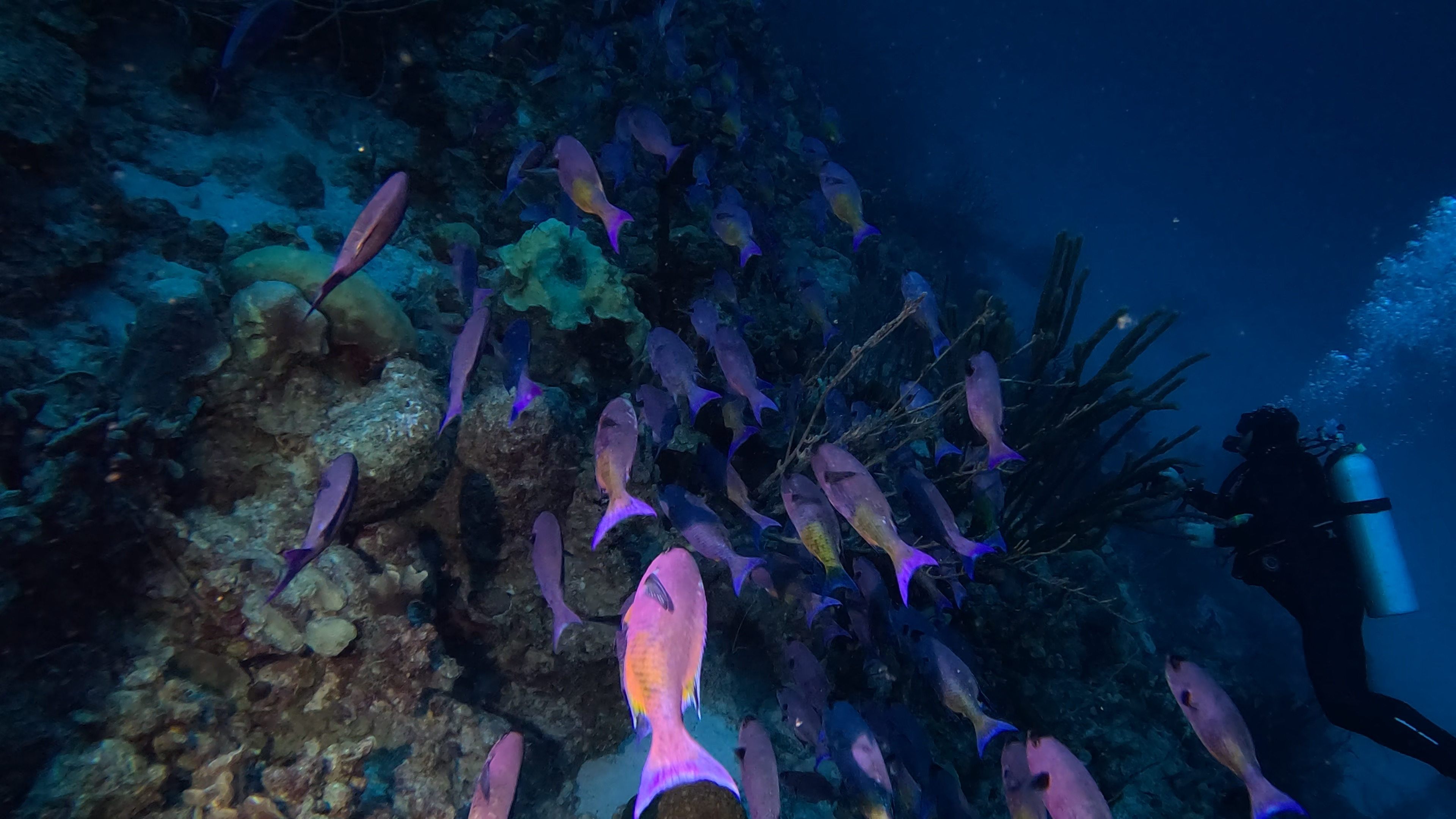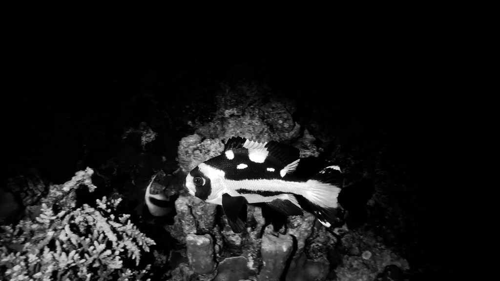 MACOLOR BLACK AND WHITE SNAPPER Night dive 2025 Red Sea foto Ales Sulic