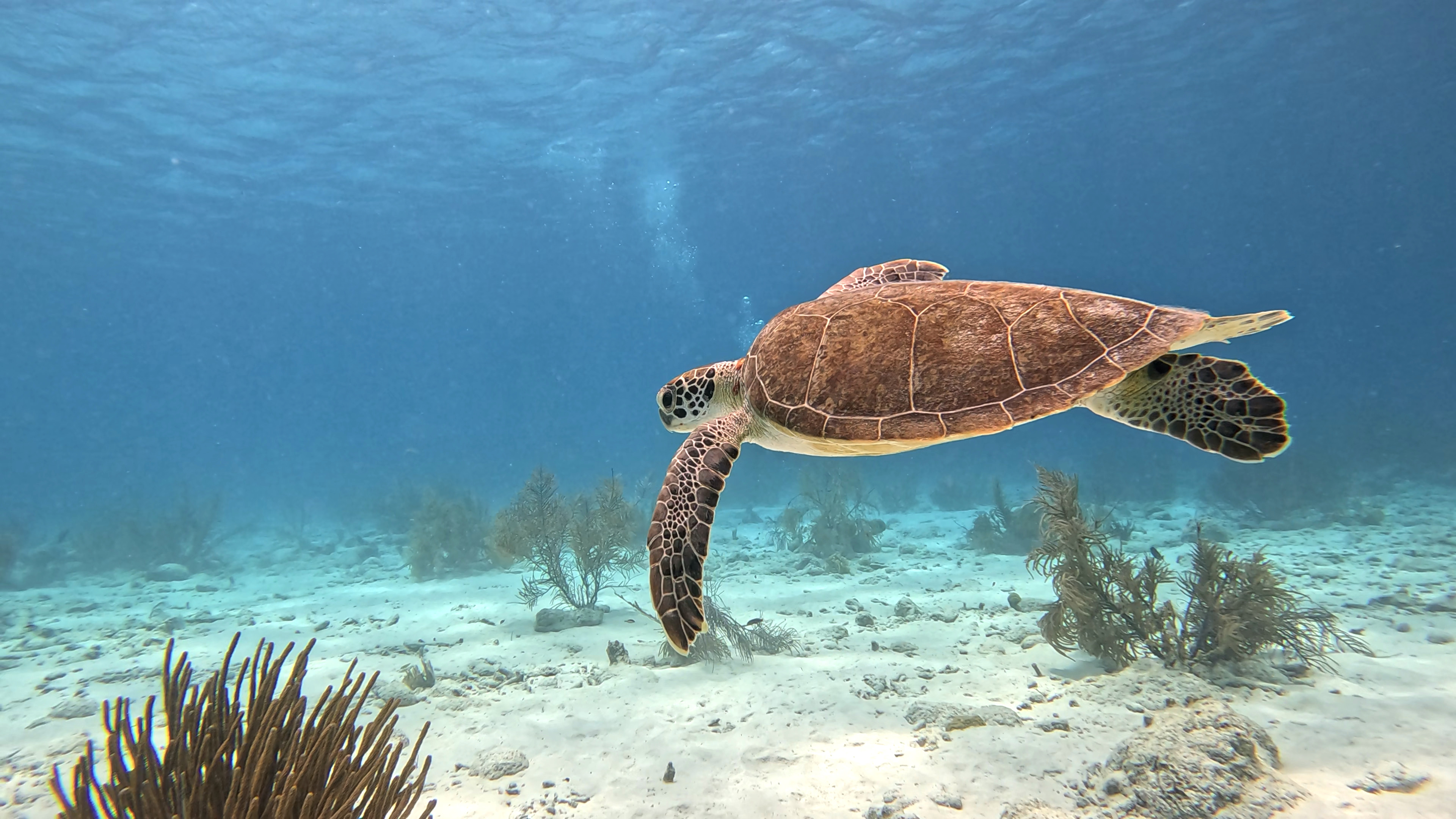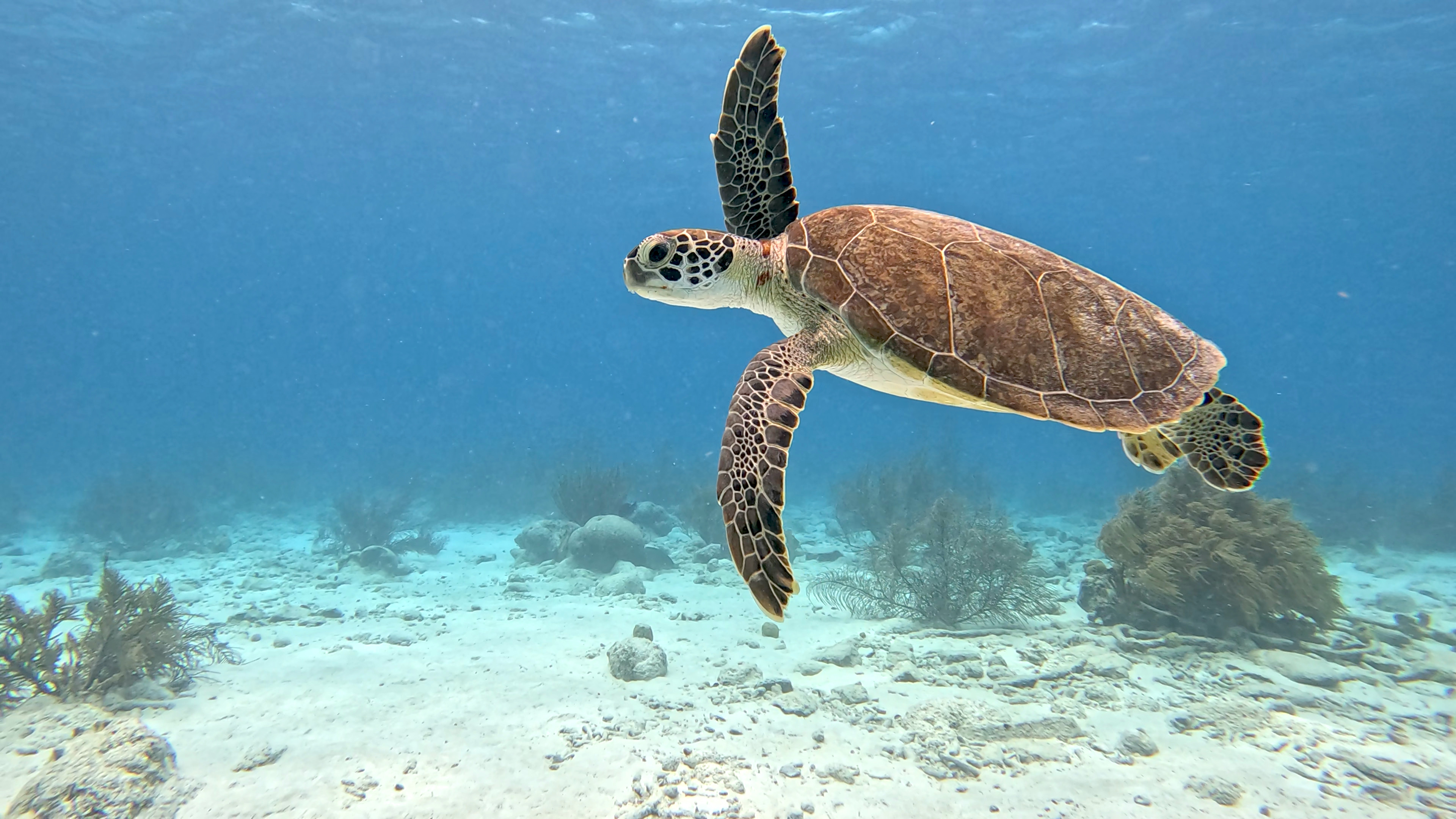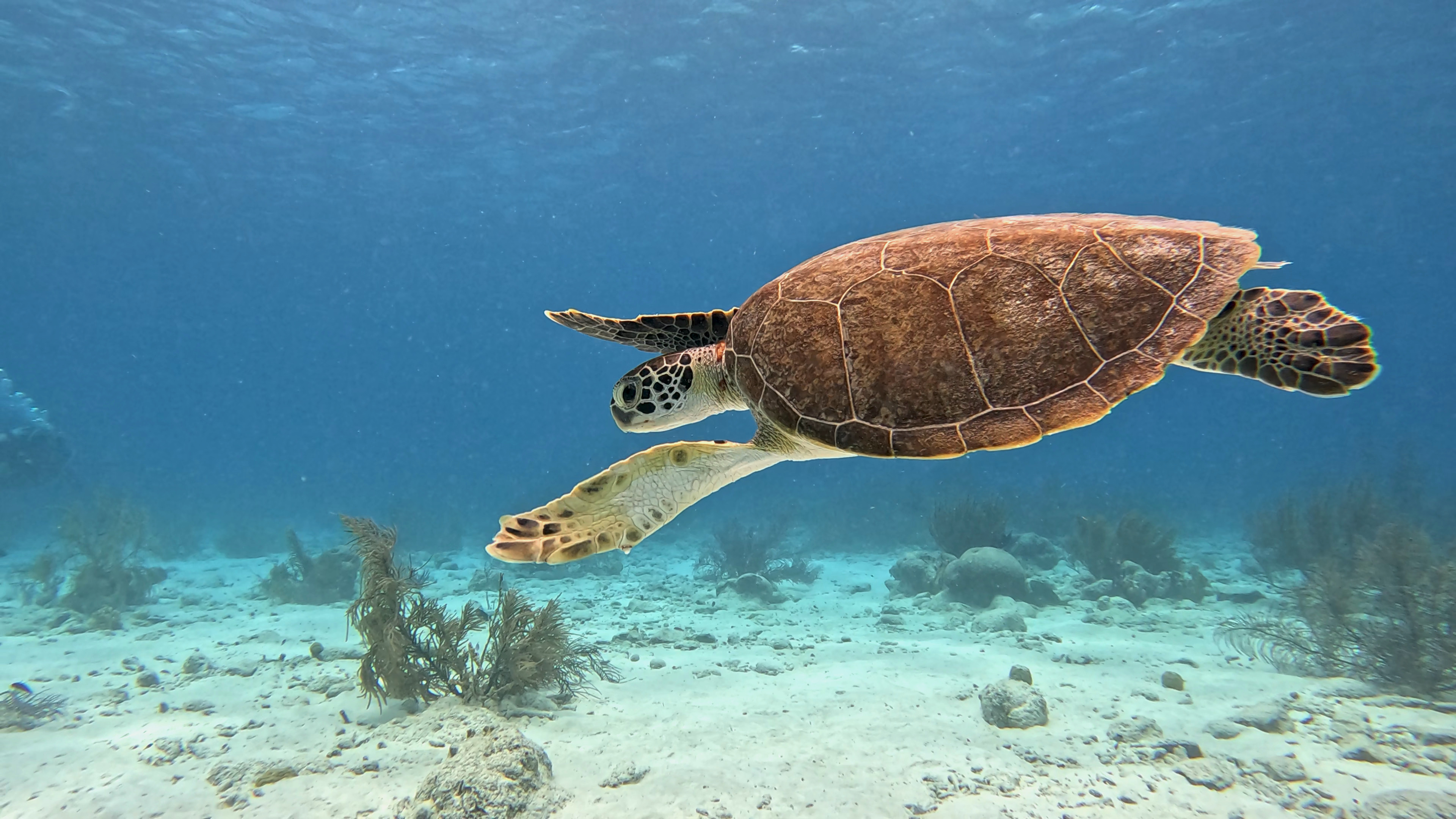 The hawksbill turtle is a small to medium-sized sea turtle known for its sharp, beak-like mouth and beautifully patterned shell. It lives mainly in tropical coral reefs in the Atlantic, Indian, and Pacific Oceans. Hawksbills feed mostly on sponges, helping keep coral reefs healthy. This species is critically endangered, mainly because of illegal trade in its shell (known as “tortoiseshell”), habitat loss, and ocean pollution.