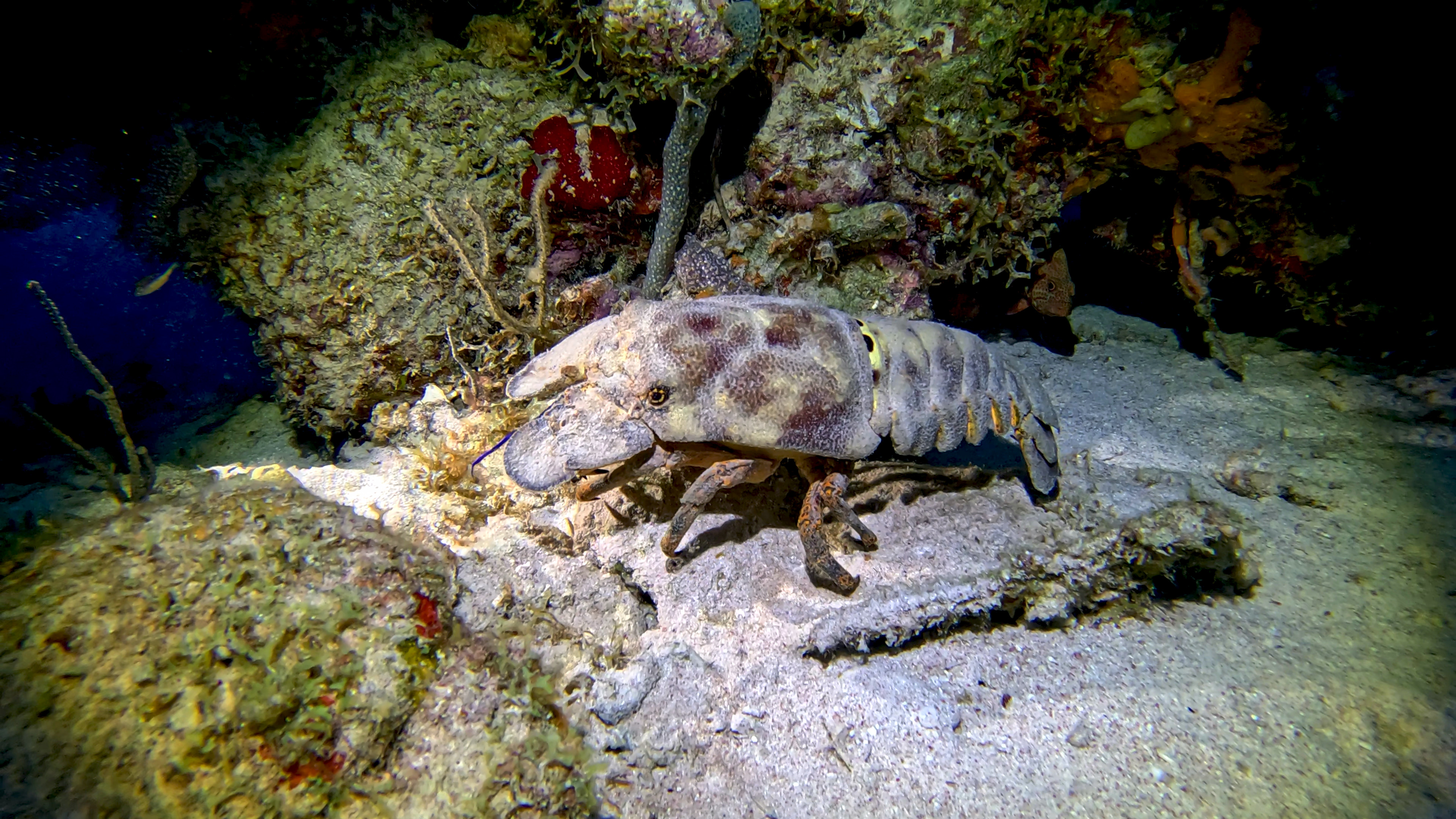 The Spiny Lobster is a species of lobster from the family Palinuridae, known for its distinctive spines on the body, particularly on the carapace. It is usually reddish-orange, often with white or yellow spots on the exoskeleton. It is found primarily in the Mediterranean Sea and along the southern and eastern Atlantic coasts, inhabiting rocky areas, where it hides in caves or crevices on the seafloor. The spiny lobster is a nocturnal species and feeds mainly on algae, marine invertebrates, and other small creatures. The spiny lobster is highly prized in cuisine, especially for its tender and flavorful meat, though due to overfishing in some regions, its populations are considered threatened.