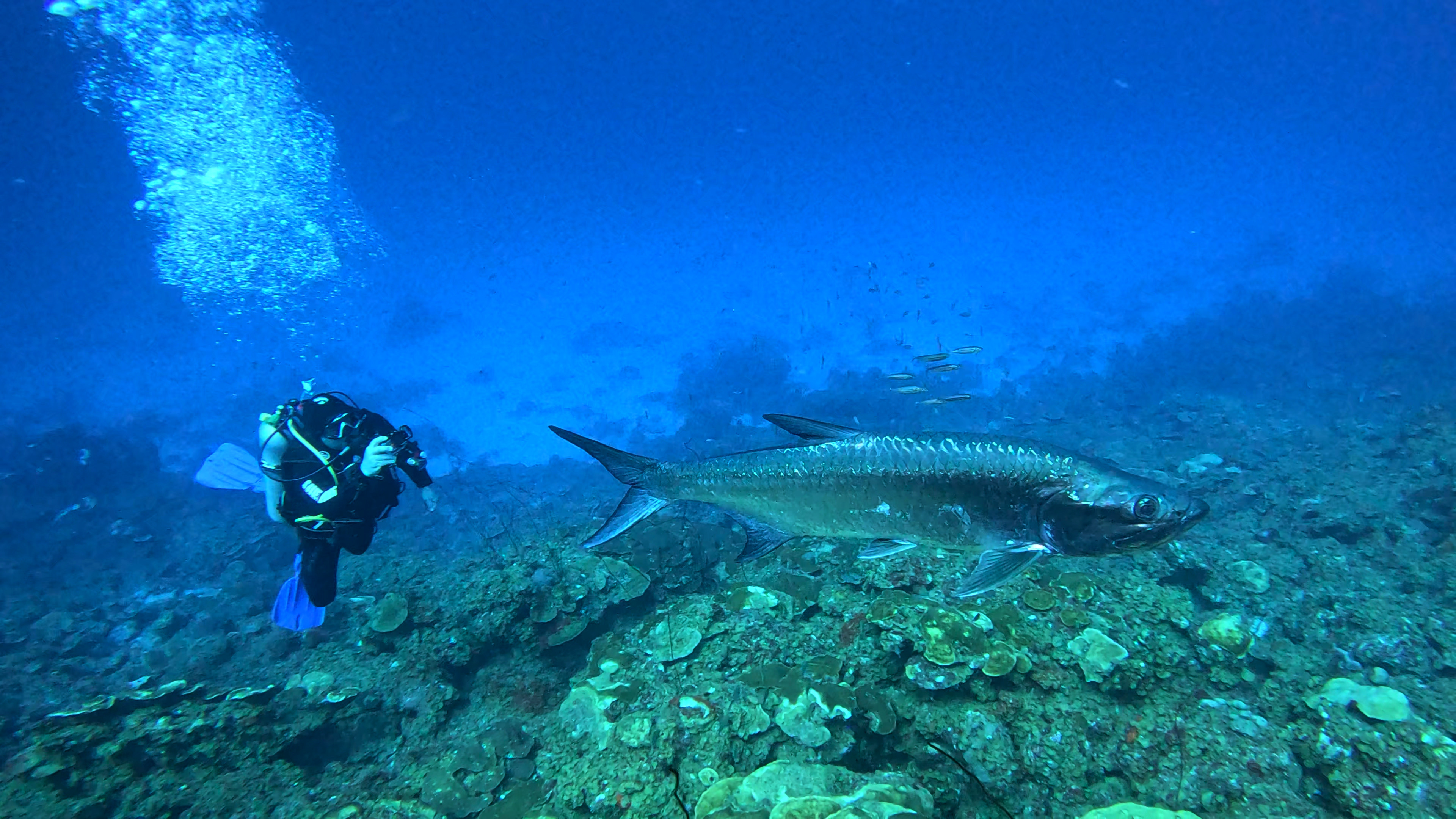 The Tarpon is a large tropical fish, known for its silvery body, large eyes, and spectacular leaping ability. It inhabits tropical and subtropical Atlantic coastal waters, mainly in the Caribbean Sea, Florida, and Central America. It is a predatory fish that feeds on smaller fish and plankton. The species is not endangered, but it is sensitive to pollution, habitat destruction, and overfishing for sport.